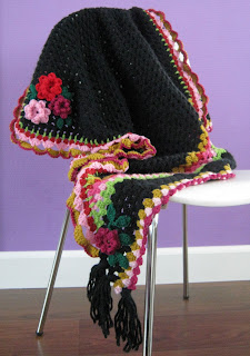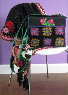 Om de Granny Bag wat op te leuken haakte ik er een omslagdoek bij. Van zwart garen omdat zwart gewoon altijd goed is. Hoe fijn kleurtjes ook zijn, soms heb je een zwarte bui.